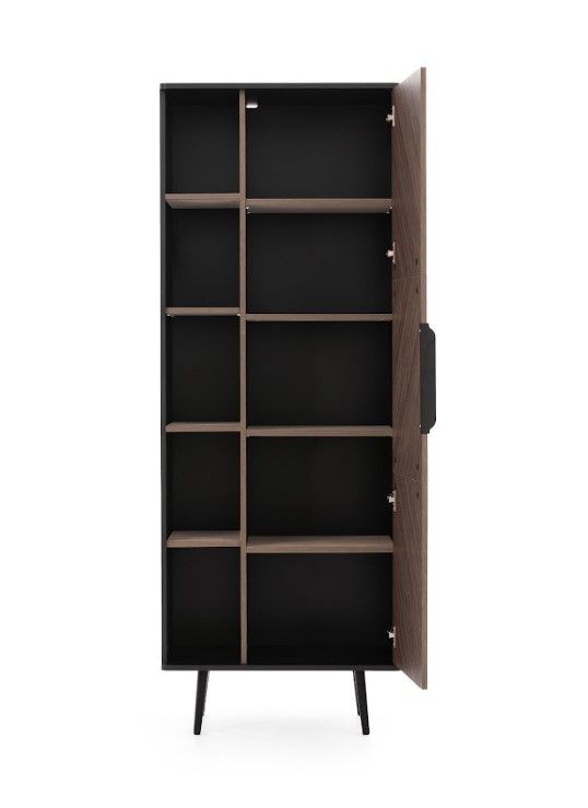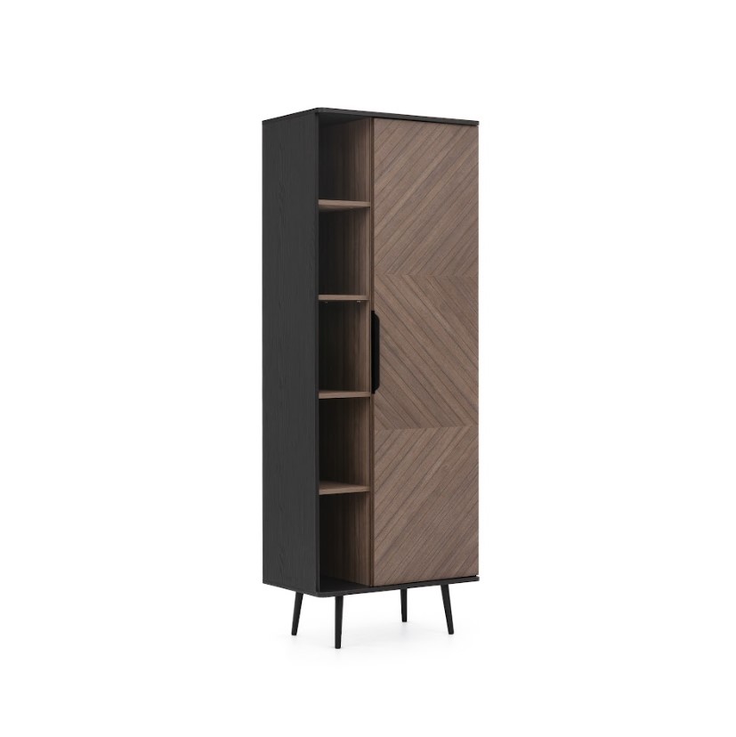 Elegantná kombinácia čiernej grafitovej farby a teplej hnedej farby prinesie do vášho domova luxusný dotyk. Regál PINELLI PN-03 zaručuje nielen estetický vzhľad, ale aj praktickú funkcionalitu, vytvárajúc harmonický priestor pre váš relax a pohodu. Vysoký regál je jedno-dverový s priestrannými poličkami. Regál je dodávaný v demonte.