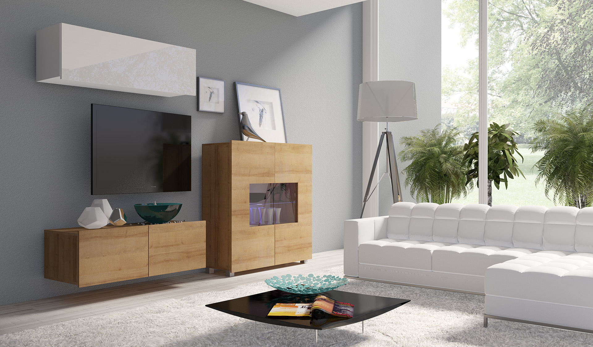 Pekná polica na zavesenie CALABRINI je vyrobená z kvalitných laminátových materiálov. Predné časti nábytku sú z MDF. ABS hrana je odolnejšia proti poškodeniu.