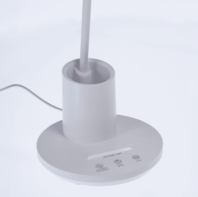 Jednoduchý a moderný dizajn lampy sa dokonale hodí do akéhokoľvek priestoru, či už ide o prácu, detskú izbu, alebo nočný stolík v spálni. Čisté línie a praktické funkcie robia z tejto lampy univerzálny a štýlový doplnok. Lampa má držiak na telefón a stojan na perá. Dotykovým spínačom jednoducho nastavíte úroveň jasu alebo teplotu farby (na výber máte teplú, studenú alebo neutrálnu).