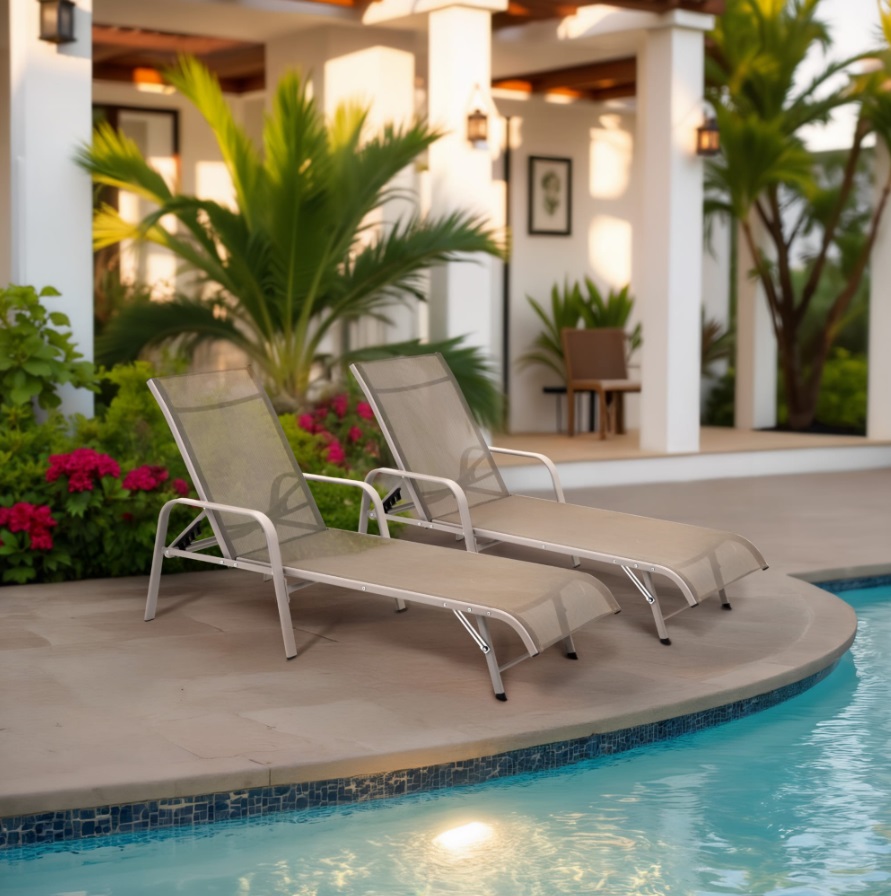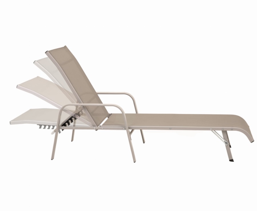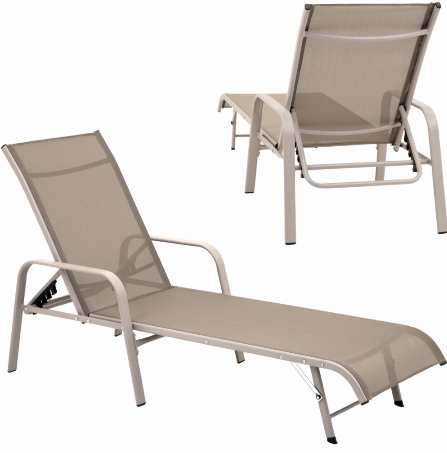 Konštrukcia záhradného lehátka je vyrobená z pevnej ocele s práškovou povrchovou úpravou, ktorá zabezpečuje odolnosť voči korózii a poveternostným podmienkam. Sedacia a opierková časť je z kvalitného textilénu, ktorý je elastický, priedušný a rýchloschnúci, čím poskytuje vysoký komfort pri používaní.