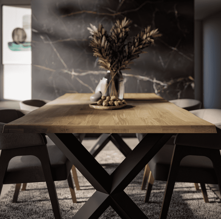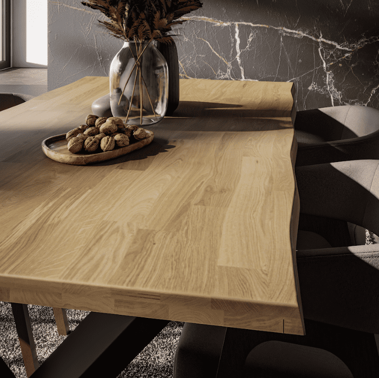 Hľadáte jedálenský stôl, ktorý zaujme na prvý pohľad a zároveň vydrží roky používania? Masívny jedálenský stôl s čiernymi masívnymi nohami a doskou z olejovaného dubového dreva je ideálnou voľbou pre moderné aj rustikálne interiéry. Vďaka prstovému spoju je stôl nielen vizuálne atraktívny, ale aj mimoriadne pevný a stabilný, nakoľko zaručuje výnimočnosť dosky. Jedálenský stôl MALMO FLOW z masívu sa stane dominantným prvkom každej kuchyne či jedálne. Je ideálny pre rodinné večere, oslavy aj každodenné stolovanie. Zaujme zaujímavo tvarovanou vrchnou doskou stola.