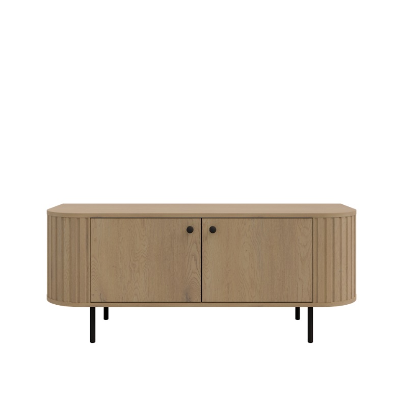 Kolekcia VAOLIA predstavuje minimalistický štýl, ktorý oživujú precízne frézované detaily a originálne zaoblené boky, ktoré vnášajú do interiéru nový rozmer elegancie. Farebné prevedenie sa nesie v tlmených, zemitejších odtieňoch, ako je dub cremona s kombináciou čiernych doplnkov, ktoré decentne narúšajú svetlé tóny. TV stolík VAOLIA 2F je dvojdverový. Jednoduché kovové nohy a úchytky, dostupné v prevedení čiernom dodávajú tv stolíku ľahkosť a vzdušnosť bez toho, aby ho opticky zaťažili.