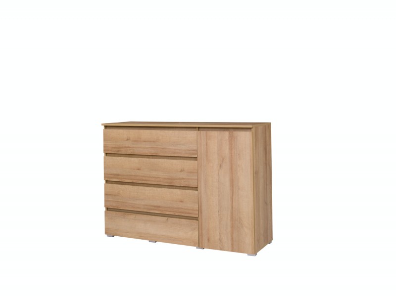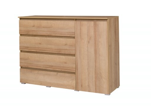 Komoda COSMO C05 je moderná a elegantná vhodná do detskej alebo študentskej izby. Farebné prevedenie dub riviera podpori atraktívny vzhľad nábytku. Bezúchytový systém je veľmi praktický a bezpečný, ale zároveň aj dizajnovo očarujúci. Komoda Cosmo C05 má 4 zásuvky vhodné najmä na odkladanie drobností, ktoré chcete mať stále po ruke a 1 dvierka, za ktorými je 1 polica. Dekoračné a spomienkové predmety si nájdu svoje miesto na vrchnej časti komody.