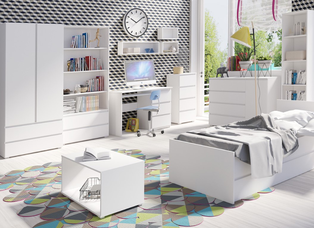 Komoda COSMO C06 je moderná a elegantná vhodná do detskej alebo študentskej izby. Najpredávanejšie biele farebné prevedenie podporí atraktívny vzhľad nábytku. Bezúchytový systém je veľmi praktický a bezpečný, ale zároveň aj dizajnovo očarujúci. Komoda má 4 zásuvky a 2 dvierka, za ktorými je na každej strane 1 polica.