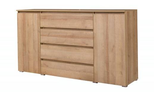Komoda COSMO C06 je moderná a elegantná vhodná do detskej alebo študentskej izby. Farebné prevedenie dub riviera podporí atraktívny vzhľad nábytku. Bezúchytový systém je veľmi praktický a bezpečný, ale zároveň aj dizajnovo očarujúci. Komoda má 4 zásuvky a 2 dvierka, za ktorými je na každej strane 1 polica.