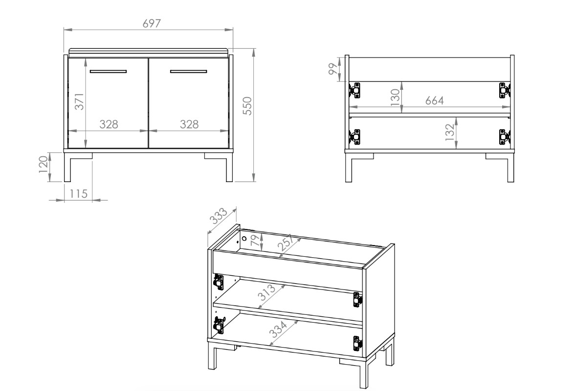 Botník je vyrobený z kvalitného laminátu 16 mm, ktorý je odolný voči poškodeniu a vlhkosti. Nohy sú plastové.