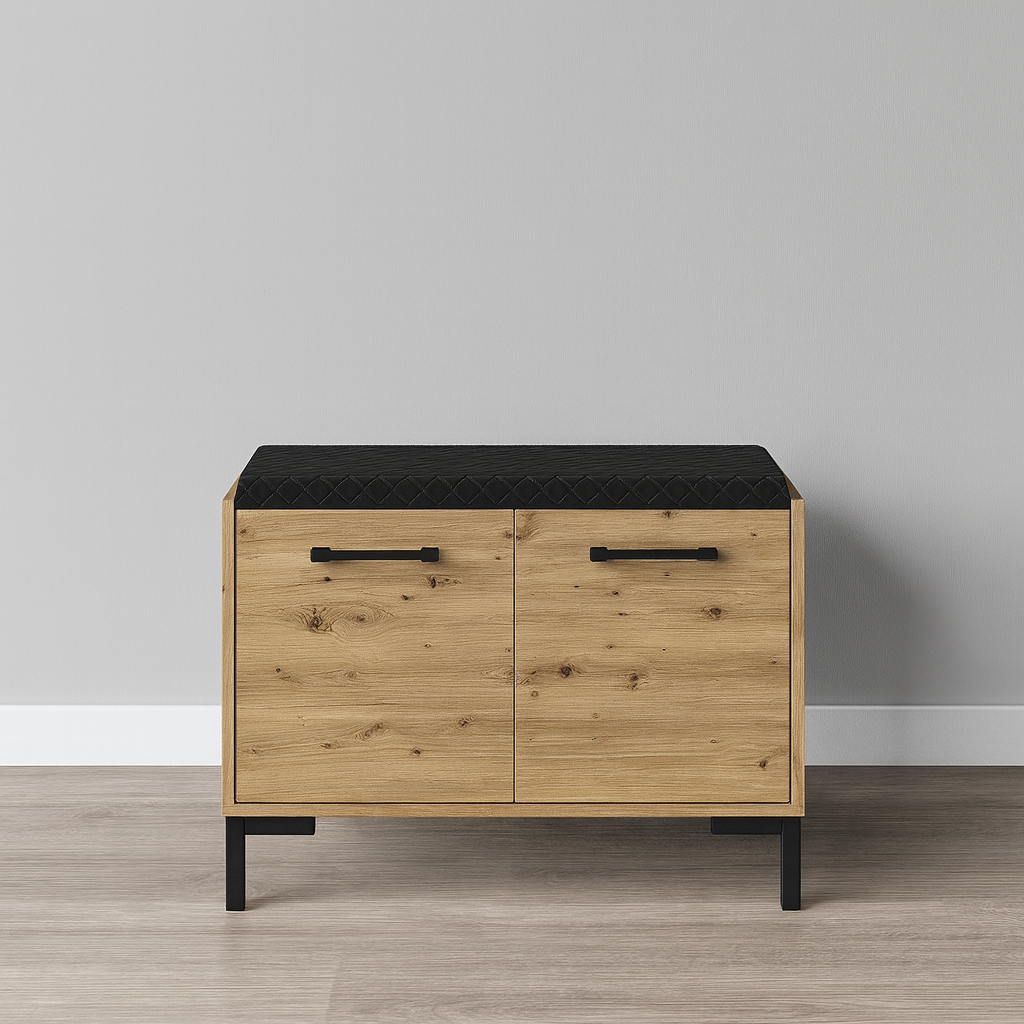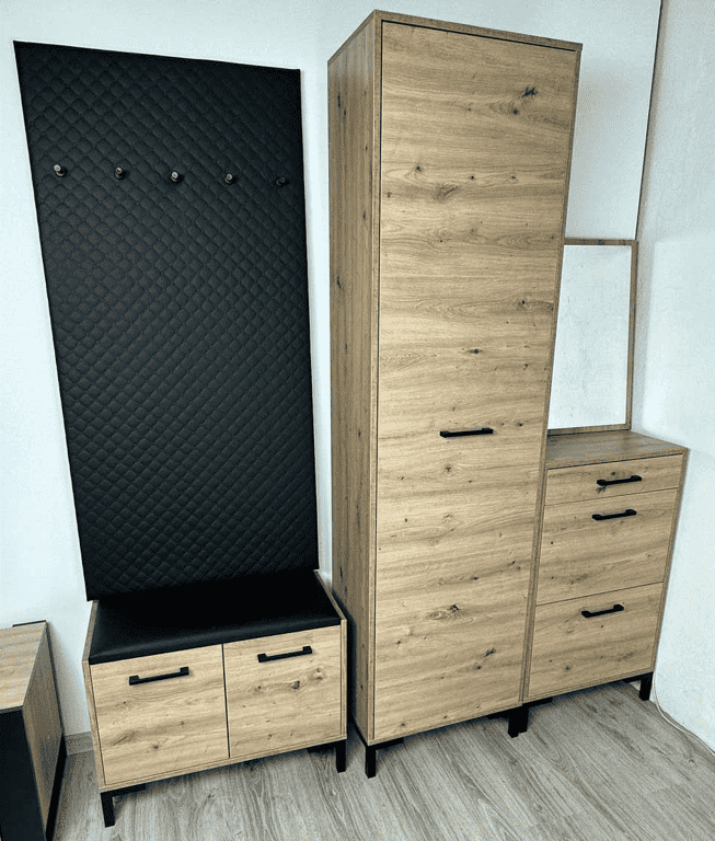 Predsieň EVION je ideálnym riešením do menších priestorov, kde nie je miesto na veľké kusy nábytku. Celá kolekcia sa vďaka obľúbenému farebnému prevedeniu ľahko kombinuje a vytvára dokonalú harmóniu. Vyššie čierne nohy celú kolekciu odľahčujú a spolu s čiernými úchytkami pridávajú jednotlivým prvkom na originalite. Botník EVION 04 má 2 dvierka, pri každodennom používaní oceníte ABS hrany.