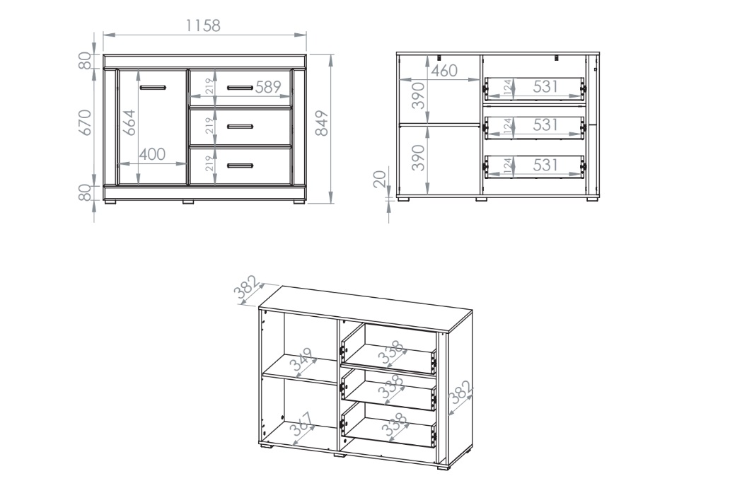 - šírka zásuviek: 53,1 cm