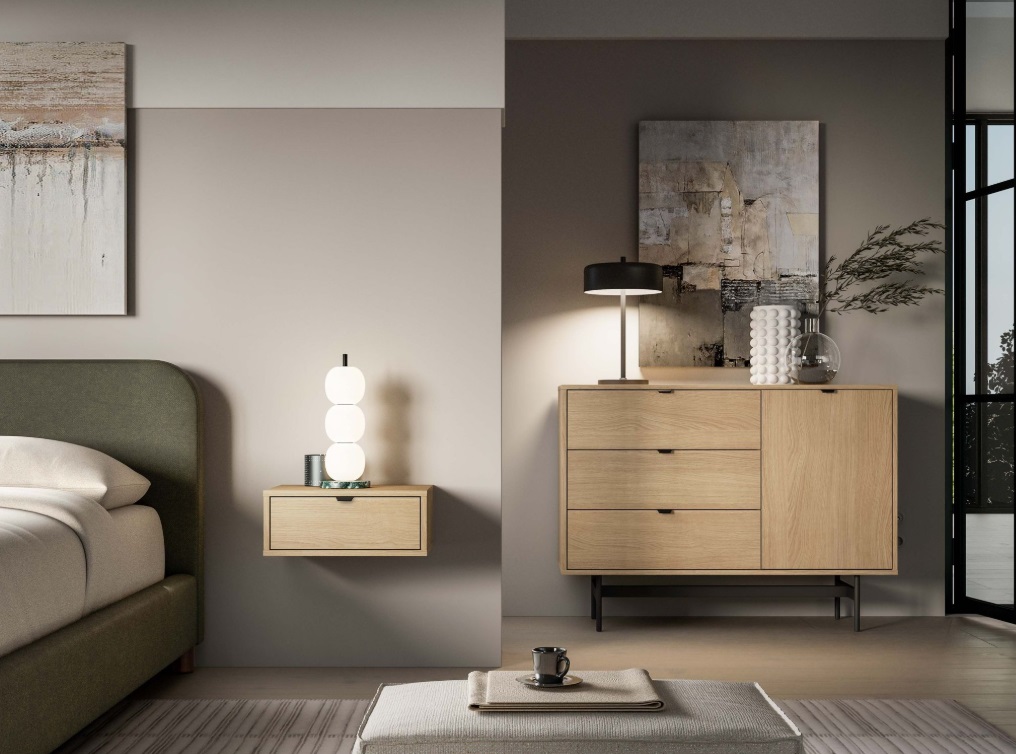 Nočný stolík SORENY 09 je navrhnutý pre moderné interiéry, v ktorých sa spája elegantný dizajn, jednoduchosť a funkčnosť. Dekor dub Mavelie Natural prináša do priestoru prirodzený a teplý vzhľad, zatiaľ čo minimalistická forma dodáva nábytku nadčasový charakter. Praktickosť nábytku zvyšujú funkčné riešenia, ako je systém push-to-open a pánty s tichým dovieraním, ktoré zabezpečujú pohodlné a tiché používanie. Nočný stolík je určený na zariadenie spálne či študentskej izby, vďaka čomu umožňuje vytvoriť jednotný a harmonický interiér v celom byte.