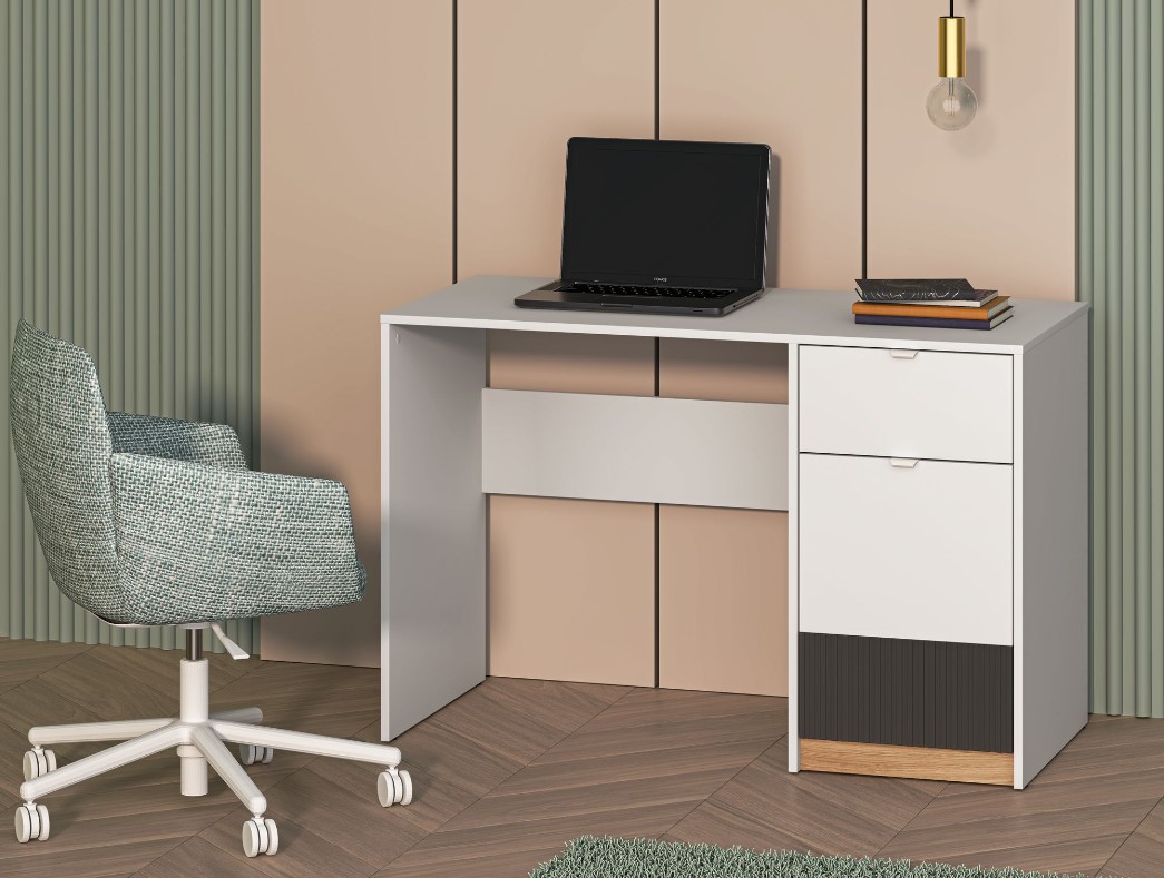 Štýlový dotyk dreva, bielej a šedej farby je práve to, čo potrebujete pre štýlový a praktický študentský priestor. Písací stolík TORISMO 08 je priestranný, so zásuvkou a skrinkou, ktoré vytvárajú veľký priestor na uloženie vecí. Vrúbkované detaily a jemné úchytky pridávajú dotyk elegancie a šarmu. Hmotnosť stolíka je 36 kg. Písací stolík sa dodáva v demonte. Investujte do kvality a štýlu s písacím stolíkom, ktorý je navrhnutý pre potreby Vašich detí.