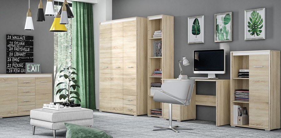 Minimalistický dizajn zostavy JOE je vhodný do moderných i klasických interiérov. Obľúbený dekor dub sonoma je oživený farebnými vložkami, ktoré je možné meniť a nábytok tak oživiť. Pôsobí vyvážene a útulne zároveň a poskytuje veľké množstvo úložného priestoru. Rohová šatníková skriňa JOE 04 je dvojdverová, vďaka ABS hranám vám bude slúžiť dlhé roky. Zariaďte si interiér s kolekciou JOE, ktorá bude pôsobiť v interiéri nenásilne a prirodzene.