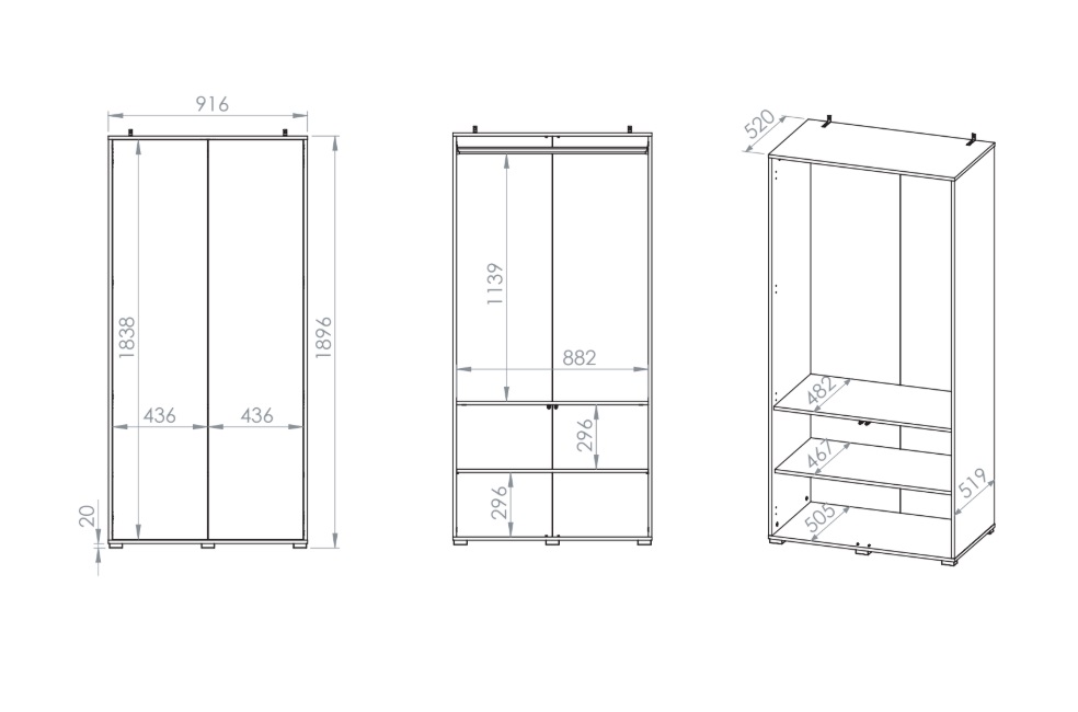 Špecifikácia pre produkt: ArtMLM Šatníková skriňa SORENY 01