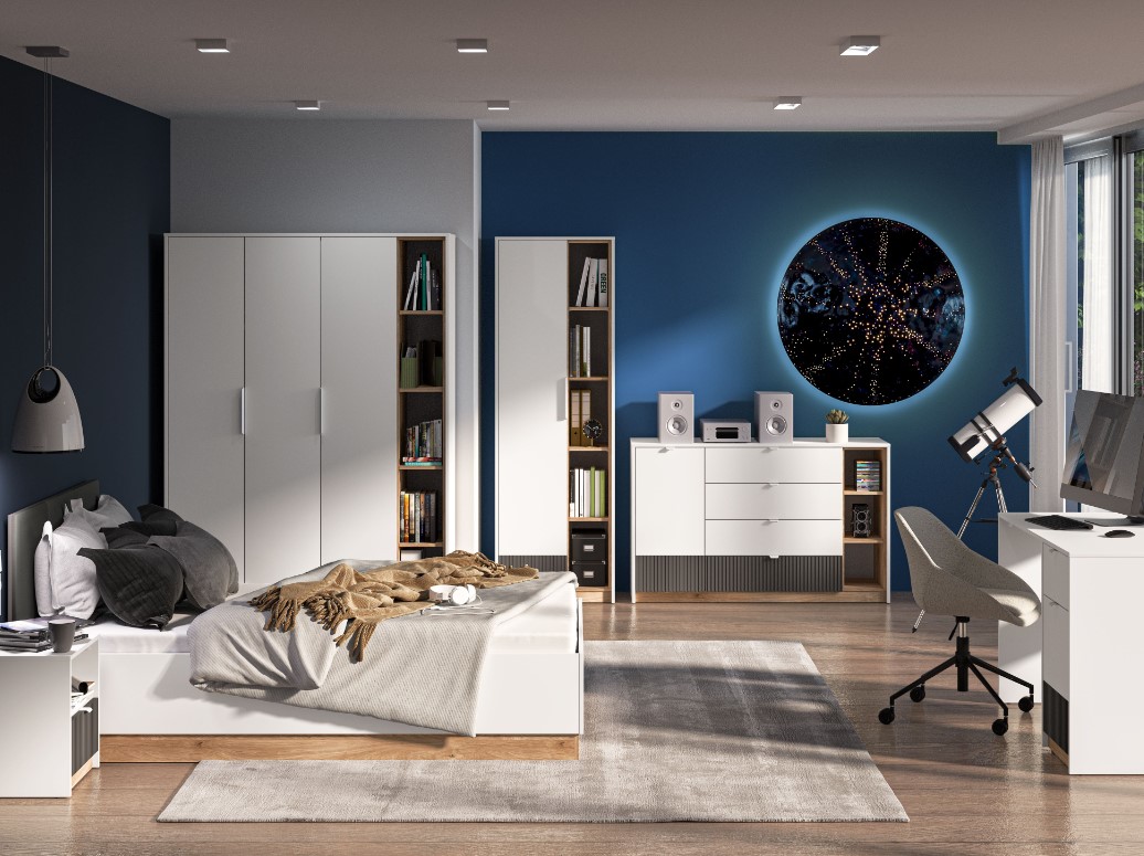 Štýlový dotyk dreva, bielej a šedej farby je práve to, čo potrebujete pre štýlový a praktický študentský priestor. Šatníková skriňa TORISMO 01 je priestranná s tyčou na zavesenie a policami, ktoré vytvárajú veľký priestor na uloženie vecí. Vrúbkované detaily a jemné úchytky pridávajú dotyk elegancie a šarmu. Hmotnosť skrine je 130 kg. Šatníková skriňa sa dodáva v demonte. Investujte do kvality a štýlu so šatníkovou skriňou, ktorá je navrhnutá pre vaše potreby.