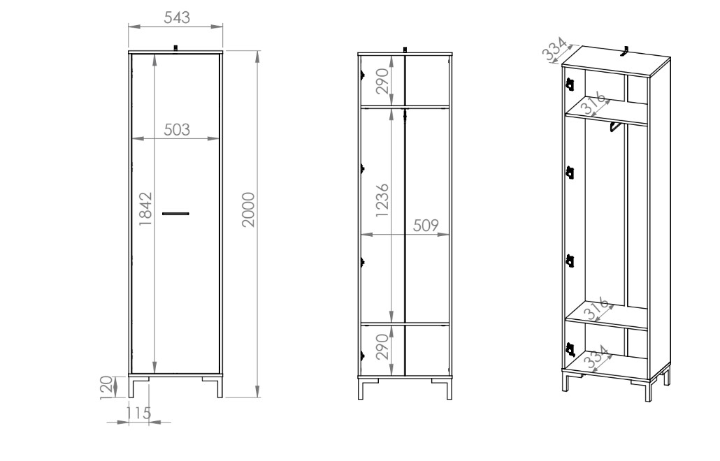 Dolmar Šatníková skriňa AUNERA AU1 | 2D