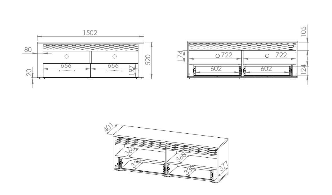 - šírka zásuviek: 66,6 cm