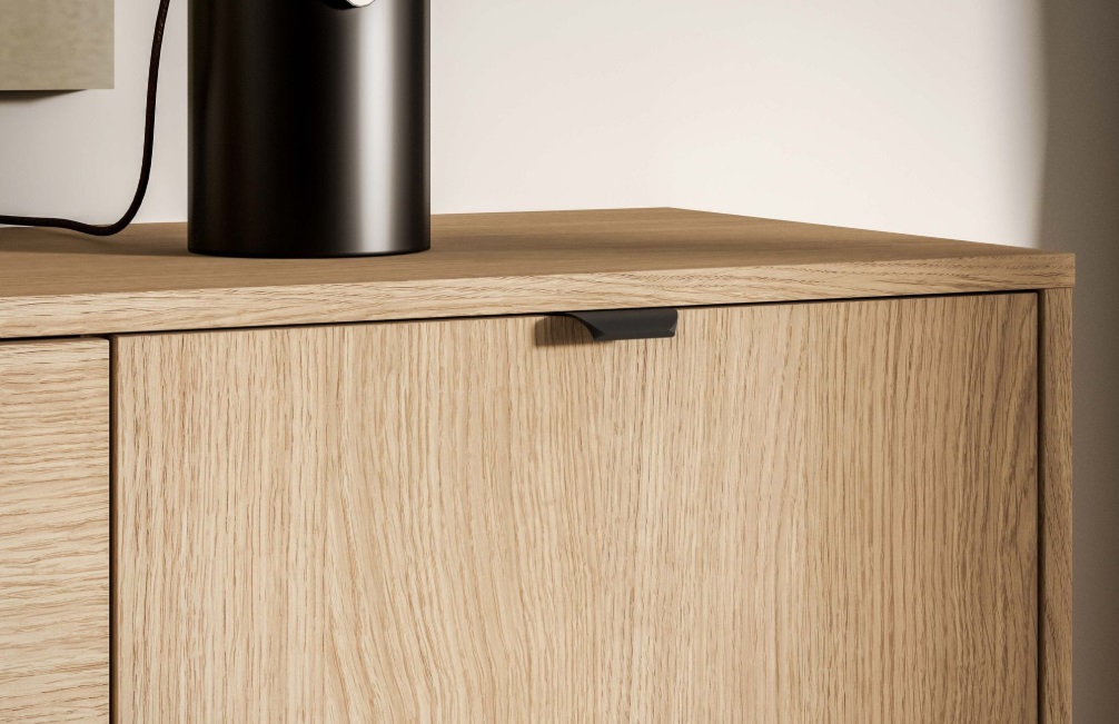 Nábytok je vyrobený z kvalitných drevotrieskových alebo MDF dosiek s odolnou povrchovou úpravou v dekore dub Mavelie Natural, ktorá je vhodná na každodenné používanie a zároveň sa ľahko udržiava. Stabilitu a moderný vzhľad zabezpečuje kovová podnož, ktorá je pevná a odolná. Použité kovanie, ako je push systém a mechanizmy tichého dovierania, zaručuje dlhú životnosť a komfort pri používaní. Čistiť mäkkou, mierne vlhkou handričkou a jemnými prostriedkami. Nepoužívať agresívne ani abrazívne čistiace prostriedky a po čistení vždy utrieť do sucha.