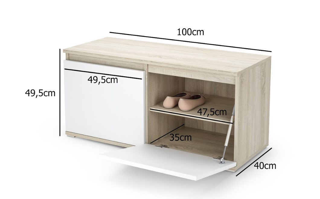 Dvojdverový výklopný botník AMY 100 s dvomi policami skvelo zapadne vďaka svojej veľkosti aj do menšej predsiene. Praktické výklopné dvierka umožňujú dobrý prístup k topánkam, botník môžete využiť aj na sedenie. Súčasťou je vešiak so šiestimi háčikmi. Vďaka množstvu prvkov si vyskladáte predsieň podľa vašich predstáv.