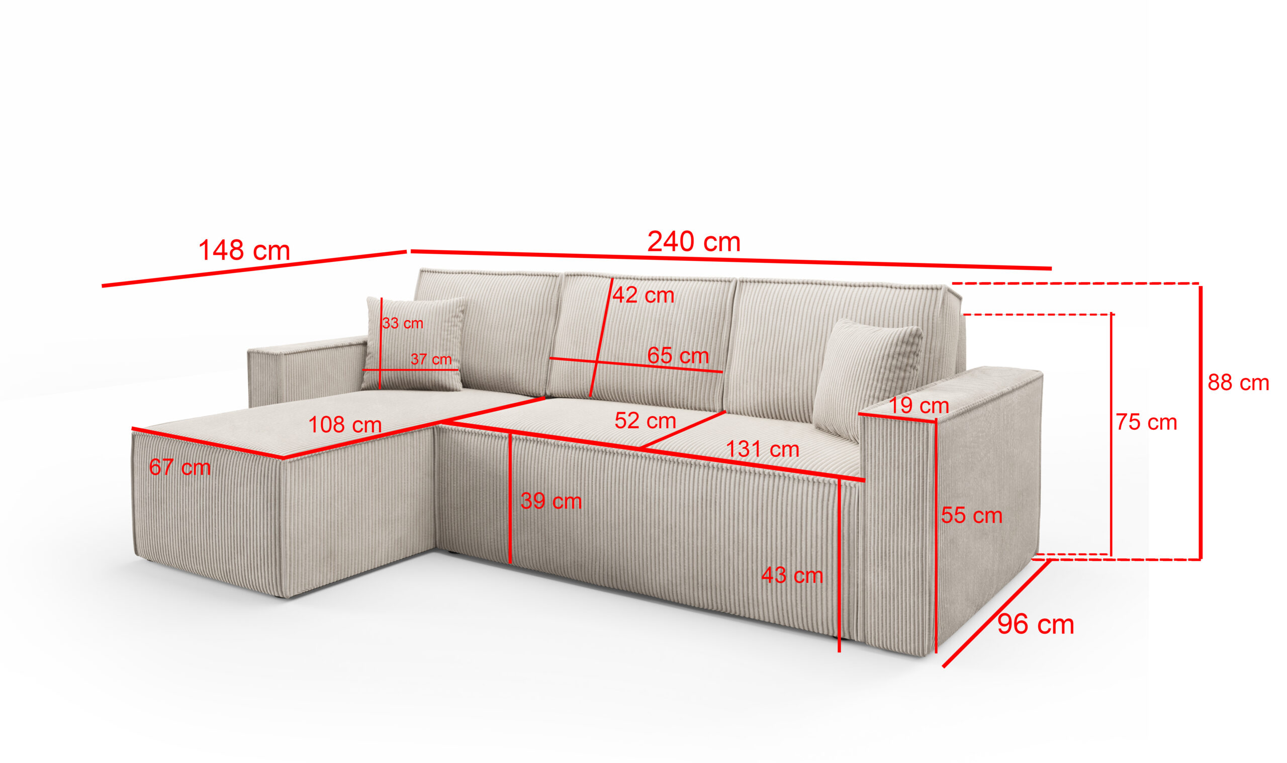 Rohová sedacia súprava BASIC L splní aj tie najväčšie očakávania náročných spotrebiteľov. Sedacia súprava BASIC L spája v sebe dokonalosť a modernosť, je rozkladacia a ponúka aj úložný priestor. Môžete ju mať postavenú aj v priestore, nakoľko je čalúnená aj zo zadnej strany, v látke je čalúnená aj plocha na spanie. V cene sedačky sú 3 veľké vankúše na opieranie a 2 dekoračné vankúše. Sedacia súprava je vyrábaná v pravej aj ľavej variante, v ponuke je množstvo očarujúcich odtieňov. Rozkladanie je zabezpečené pomocou systému DL, čiže sedacia časť sa vytiahne dopredu a operadlo sa sklopí.
