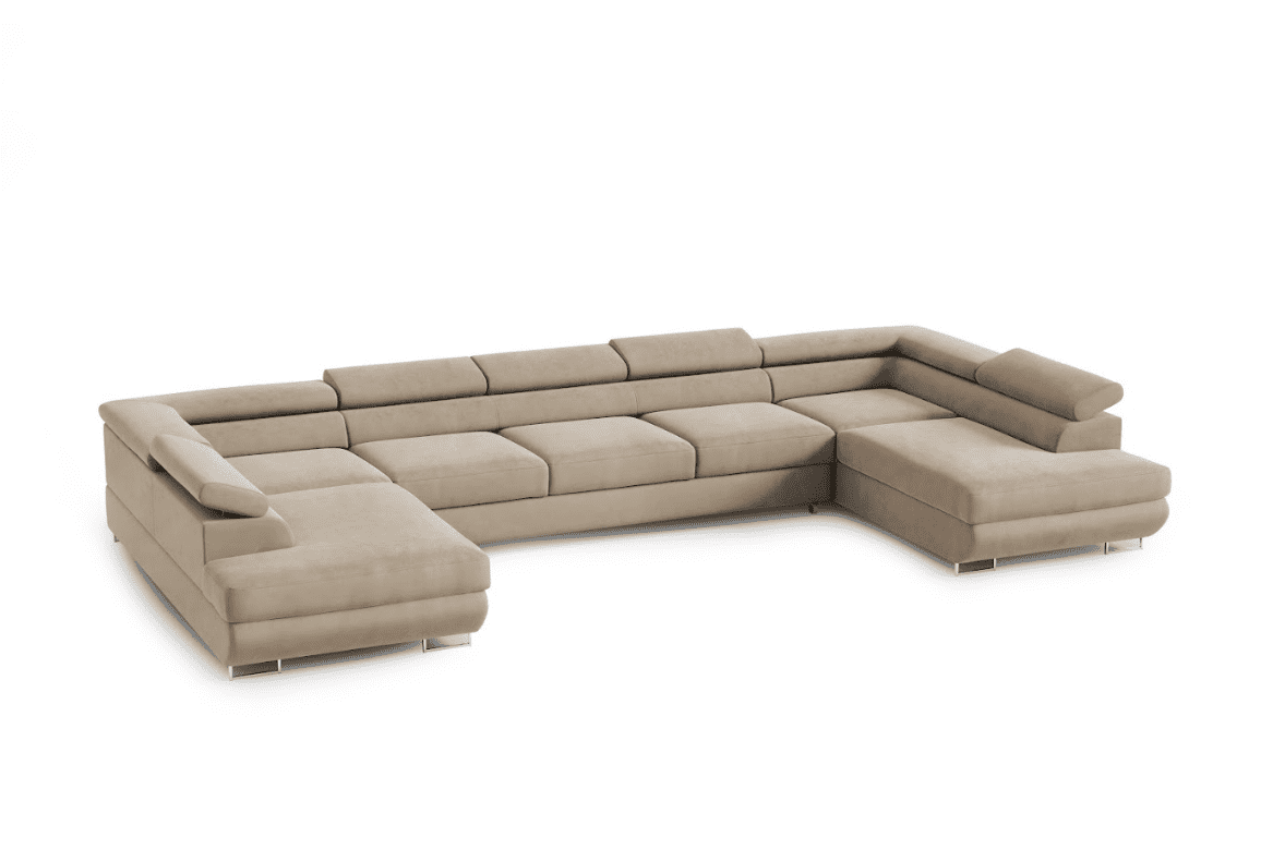 Objavte dokonalú kombináciu elegancie, pohodlia a priestoru s rohovou sedacou súpravou ISABELLA v béžovom prevedení, ktorá sa stane dominantou každej modernej obývačky. Vďaka svojmu veľkorysému tvaru do „U“ ponúka dostatok miesta pre celú rodinu aj návštevy a vytvára ideálny priestor na oddych, sledovanie televízie či spoločné chvíle. Minimalistický dizajn v neutrálnom jemných odtieňoch pôsobí nadčasovo a ľahko sa kombinuje s rôznymi štýlmi interiéru – od moderného cez škandinávsky až po elegantný minimalistický. Čisté línie dopĺňajú nastaviteľné opierky hlavy, ktoré zvyšujú komfort pri sedení a umožňujú prispôsobiť si polohu presne podľa vašich potrieb. Veľkým plus je možnosť rozkladu a dva úložné priestory.