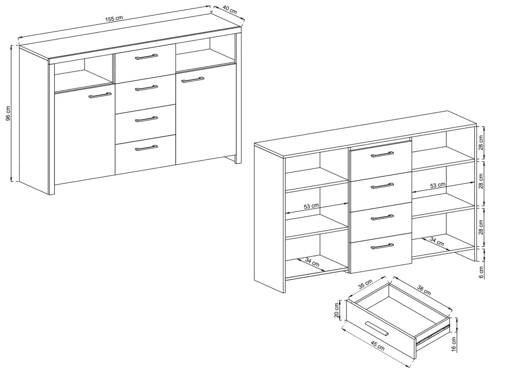 Špecifikácia pre produkt: ArtPS Komoda HEAVEN SK155 Farba: Dub riviera
