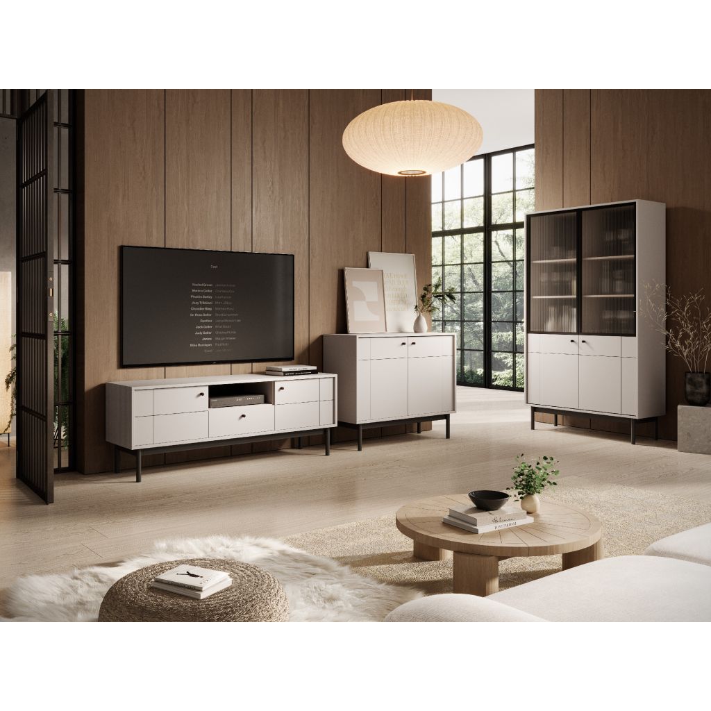 Komoda JAPANESE K104 | cashmere je zhotovená z odolného 16 mm laminátu, ktorý zaručuje jej kvalitu. Drevené nohy sú natreté elegantnou čiernou farbou, zatiaľ čo kovová úchytka pridáva minimalistický dotyk. Hrany nábytku sú opatrené ABS lištami pre vyššiu odolnosť a dlhšiu životnosť. Pánty Haefele majú tiché zatváranie. Nábytok je dodávaný v rozloženom stave na jednoduchšiu prepravu a montáž. Čistenie je jednoduché, stačí ho utrieť vlhkou handričkou, alebo prípravkom na nábytok.