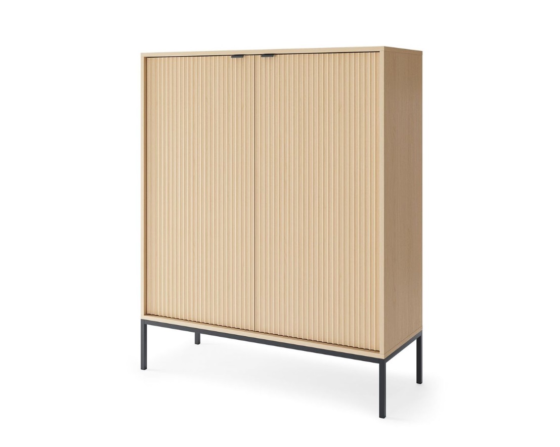 Komoda MONA K-104 má korpus zo 16 mm lamina, dvierka z 18 mm MDF. Nenápadné úchytky v zlatej farbe komodu dopĺňajú. Pôsobivý kontrast tvoria čierne nohy z lakovanej ocele s práškovou úpravou. Nábytok má ABS hrany. Čistenie je jednoduché a rýchle – stačí použiť navlhčenú handričku alebo vhodný čistiaci prostriedok na nábytok.