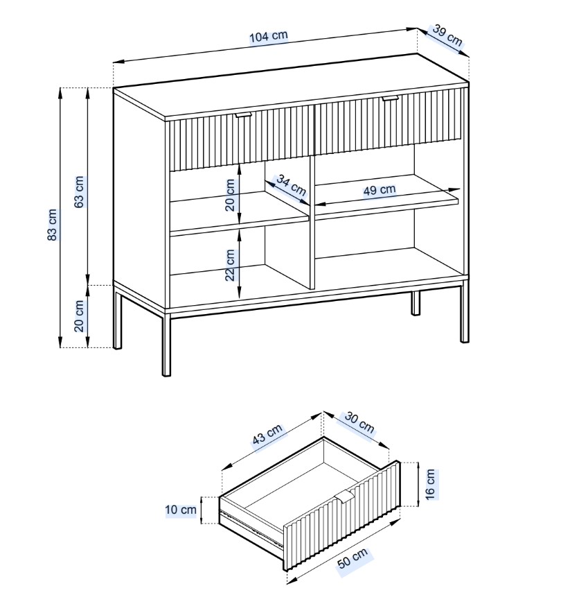 Špecifikácia pre produkt: ArtPS Komoda MONA KSZ-104 | sivá
