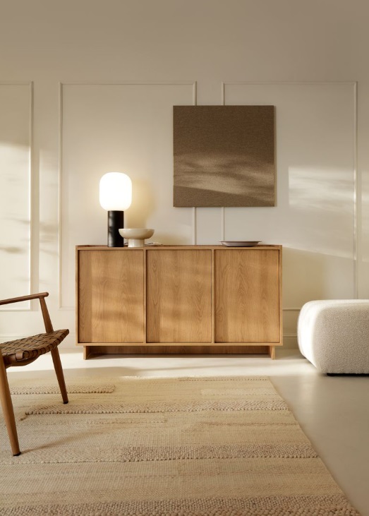 Táto kolekcia nábytku SAMAYA v prevedení dub caramel prináša harmonické spojenie moderného dizajnu a príjemného prírodného vzhľadu. Vyznačuje sa vyváženými proporciami, hladkými plochami a teplým odtieňom dreva, ktorý zútulní každý interiér. Vďaka svojmu minimalistickému štýlu sa ľahko kombinuje s rôznymi typmi zariadenia a je ideálnou voľbou pre moderné aj nadčasové bývanie. Komoda SAMAYA K147 je priestranná, trojdverová s tromi policami.