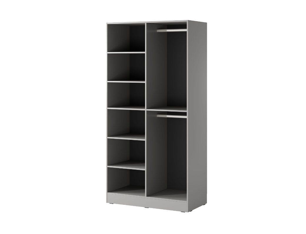 Moderná šatníková skriňa FLEXON s modulárnym dizajnom vám umožní prispôsobiť si úložný priestor podľa potrieb aj rozmerov miestnosti. Vo farbe sivej s elegantne dverami ANTISOL zapadne do každého interiéru. Dvere sú z priehľadného skla osadené v hliníkových rámoch. Vnútorné usporiadanie šatníkovej skrine ponúka police a závesné tyče, čo poskytuje maximálnu prehľadnosť aj priestor na zavesenie odevov.