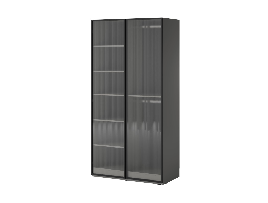 Moderná šatníková skriňa FLEXON s modulárnym dizajnom vám umožní prispôsobiť si úložný priestor podľa potrieb aj rozmerov miestnosti. Vo farbe sivej s elegantne dverami FLUTES zapadne do každého interiéru. Dvere sú z priehľadného vrúbkovaného skla osadené v hliníkových rámoch. Vnútorné usporiadanie šatníkovej skrine ponúka police a závesné tyče, čo poskytuje maximálnu prehľadnosť aj priestor na zavesenie odevov.