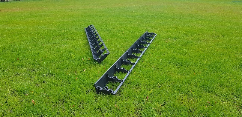 Použitý materiál je odolný, pevný a ľahký, čo uľahčuje akúkoľvek manipuláciu. Špeciálna konštrukcia umožňuje ukotvenie pomocou plastových kotviacich hrotov. Odporúčame 3 hroty na 1 meter. Na zatĺkanie klincov stačí obyčajné kladivo alebo palička. Obrubníky sa spájajú jednoduchým zatlačením koncov obrubníkov k sebe.