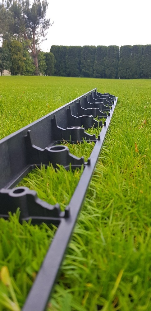 Neviditeľný obrubník DUO 58 mm z tvrdého plastu je skvelým pomocníkom pri úprave terénu a budovaní záhrady. Je vhodný tam, kde potrebujete oddeliť záhon od trávnika bez toho, aby bol okraj záhonu výraznejší. Ďalšou výhodou obrubníka je možnosť jeho tvarovania do oblúkov, takže si môžete vytvoriť okraj záhonu podľa svojich predstáv. Ďalšou výhodou je bezproblémové kosenie trávnika až po okraj oddelenej plochy, Cena je uvedená za 2 kusy! K uchyteniu je potrebné dokúpiť plastové kolíky.