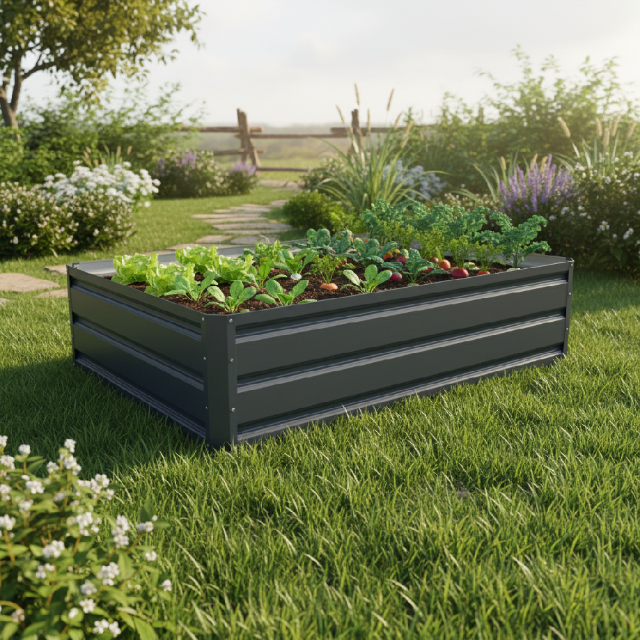 Moderný a praktický vyvýšený plechový záhon bez podlahy je vhodný do každej záhrady. Veľkým plusom sú pozinkované oceľové panely, ktoré zaručujú dlhodobé využívanie. Oceníte ľahkú montáž.
