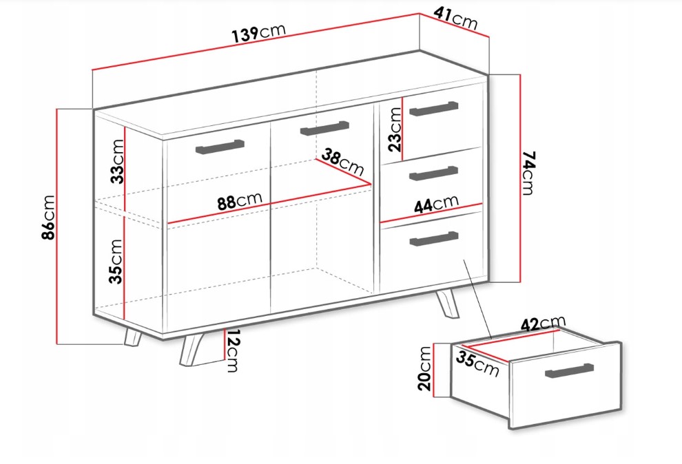 - vnútorná šírka zásuvky: 42 cm