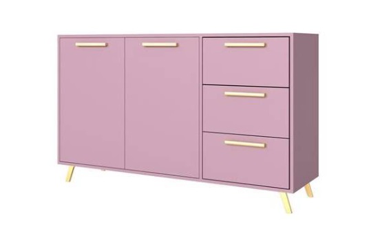Populárna komoda BALI je spojením extravagancie a dizajnu. Milovník tohto štýlu si príde na svoje. Komoda Bali má tri priestranné zásuvky a dvoje dvierka s poličkami. Moderné úchytky a nohy v zlatej farbe v kombinácii so sviežou farbou prinášajú radosť pri zariaďovaní každej detskej, obývacej izby, ktorú potrebujete oživiť. Vysoké nohy a štýlové rukoväte výrazne vyniknú a zjednodušia prístup k uloženým predmetom. Komoda je v peknej fialovej farbe.
