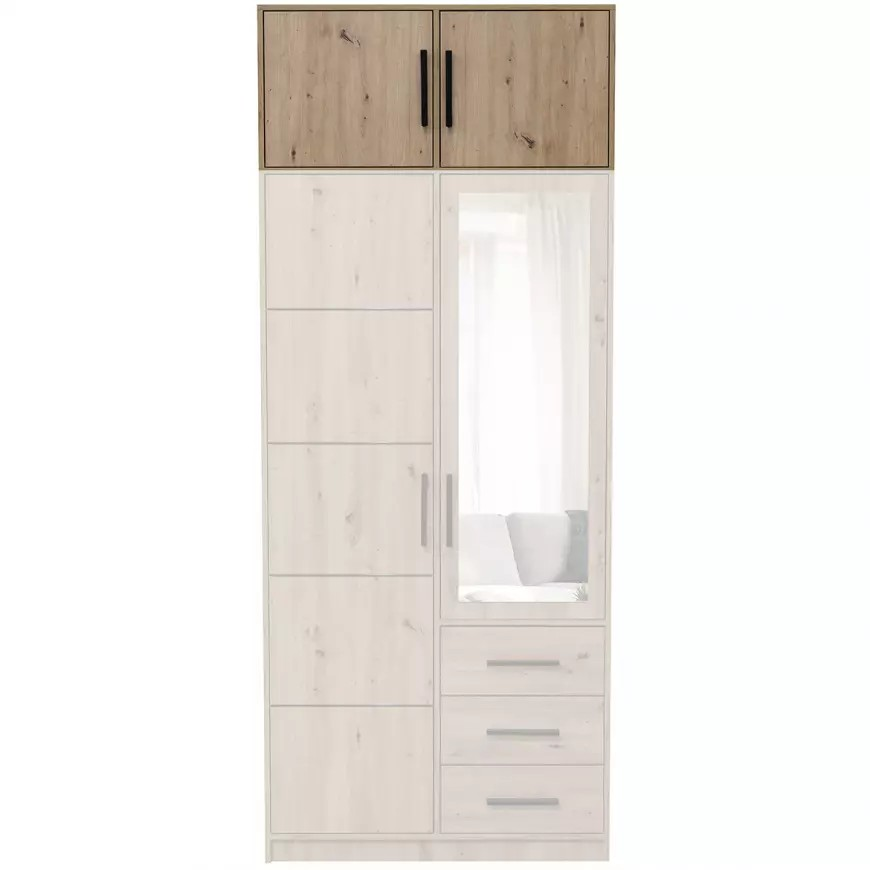 Mimoriadny nadstavec na skriňu KOS D2 je charakteristický jednoduchými čiernymi úchytkami a atraktívnymi čiernymi líniami na predných dvierkach. Nadstavec je tiež vyrobený z kvalitného a odolného materiálu, ktorý zaručuje dlhú trvanlivosť a Vašu spokojnosť. Nadstavec ponúka aj mimoriadne prevedenie úložného miesta, nadčasové farebné prevedenie a výnimočné línie. Tak už viac neváhajte a doprajte svojej spálni nádych praktickosti v podobe nadstavca KOS D2. Nadstavec je vhodný ku šatníkovej skrini KOS D2.