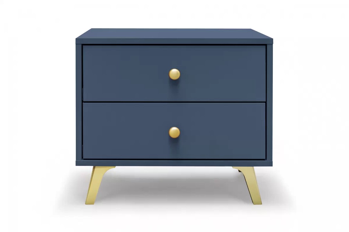 Farebná kolekcia SIENA vznikla spojením moderného štýlu a minimalizmu. Nočný stolík SIENA je jednoduchý nočný stolík na kovových nohách, má tri zásuvky a dvoje dvierka s poličkami. V interiéri vynikne vďaka zlatým úchytkám a vysokým nohám. Stolík je v krásnom farebnom prevedení modrá.