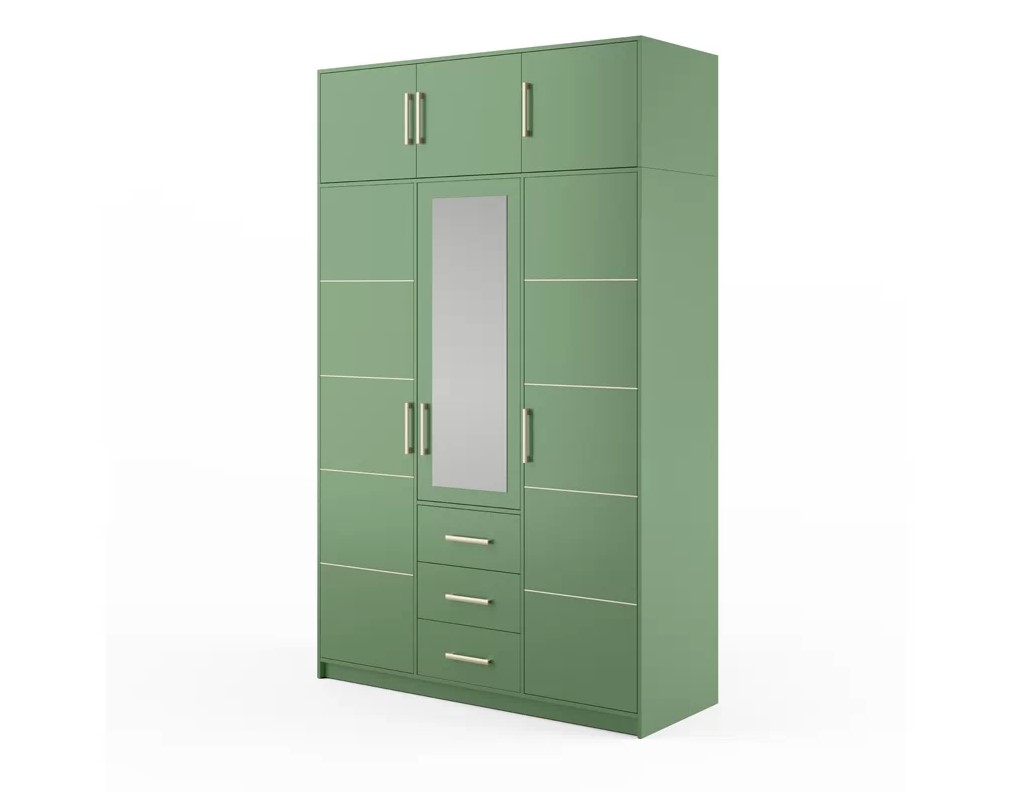 Priestranná šatníková skriňa BALI D3 s nadstavcom je kúskom extravagancie a dizajnu. Milovník tohto štýlu si príde na svoje. Šatníková skriňa Bali má zásuvky, vešiakovú tyč a police. Štýlové rukoväte v zlatej farbe v kombinácii so sviežou farbou výrazne vyniknú a zjednodušia prístup k uloženým predmetom. Skriňa je v peknej zelenej farbe. Prineste deťom radosť pri zariaďovaní detskej, ktorú potrebujete oživiť.