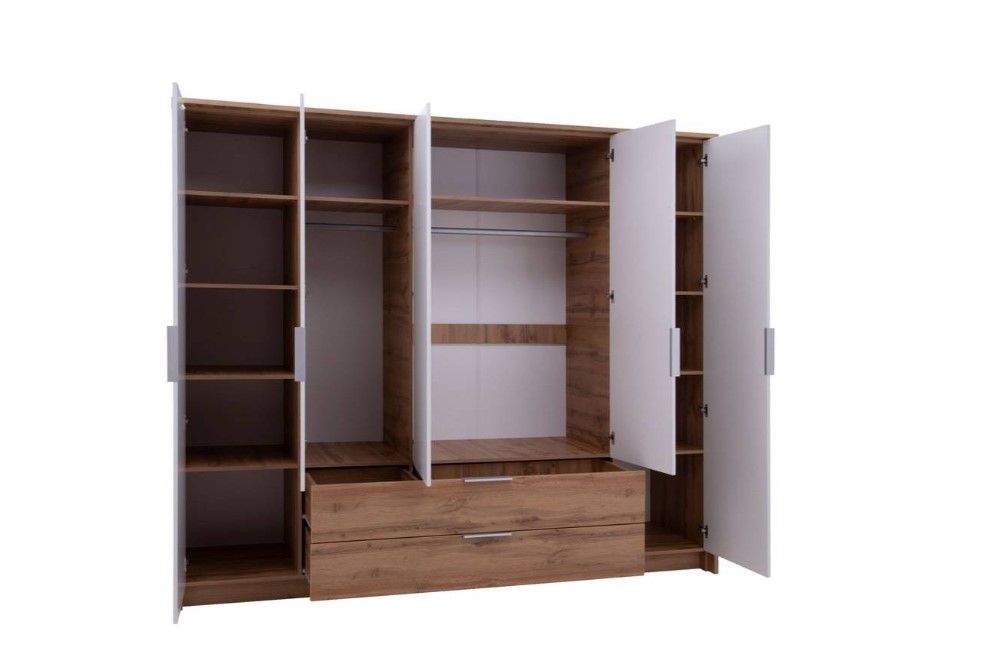 Šatníková skriňa VIENNA, je súčasťou spálňového nábytku VIENNA, ktorý predstavuje elegantné línie, spojené s praktickým prevedením. Skriňa ponúka dostatok úložného priestoru a neodolateľný dizajn. Súčasťou skrine je aj vnútorné vybavenie. Skriňa je v peknom farebnom prevedení dub wotan s kombináciou bielej. Nábytok je dodávaný v demonte.