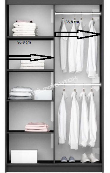 - šírka vešiakovej tyče: 56,8 cm