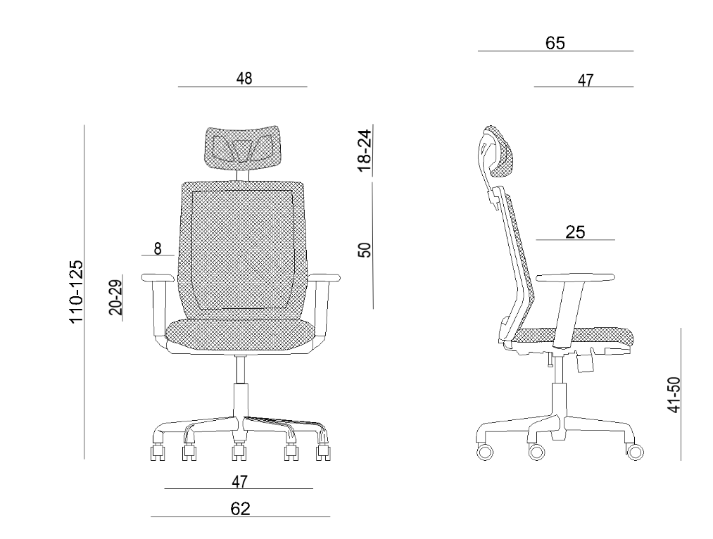 - výška opierky hlavy: 18-24 cm