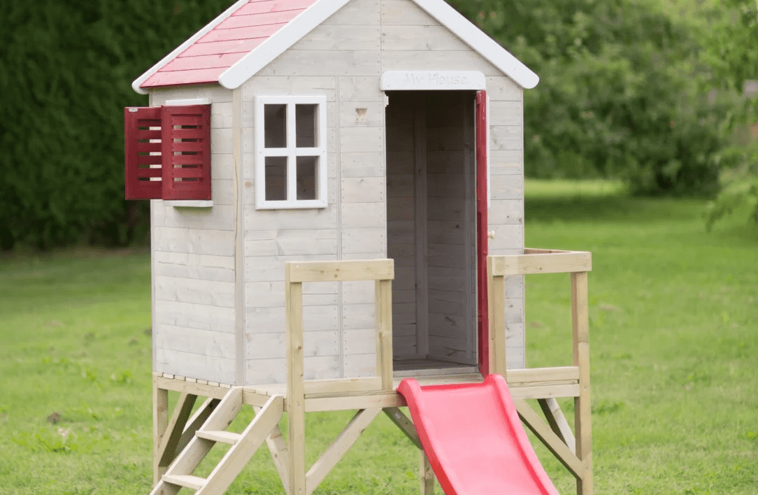 Snom každého dieťaťa je mať na záhrade tiché bezpečné miesto, miesto na oddych či hru s kamarátmi – na svoj záhradný detský domček. Hravý drevený záhradný detský domček FAIRY sa stane obľúbeným miestom pre zábavu a relax vašich nezbedných detí. Očarujúci domček FAIRY nie je len miestom, kde sa deti môžu zabávať, ale aj priestorom, kde sa rodí nekonečná radosť a kreativita. S jeho špeciálnym dizajnom a pridanými vylepšeniami sa stal FAIRY domček jedným z najobľúbenejších spôsobov, ako zahájiť dobrodružnú cestu detskej fantázie. Detský záhradný domček FAIRY poskytuje dostatok priestoru pre deti na hranie sa. Detský FAIRY domček je miestom, kde sa deti môžu vyjadriť a rozvíjať svoju kreativitu. Veselé hry a vymýšľanie príbehov sa tak stanú každodennou zábavou. S červenými detailmi a rozprávkovým dizajnom prichádza FAIRY domček s atmosférou, ktorá okamžite prenesie vaše deti do sveta rozprávok. Domček je vybavený balkónom, ktorý deti milujú. Môžu si vychutnať krásny výhľad na záhradu a prežiť nezabudnuteľné chvíle so svojimi kamarátmi. Nič neposkytuje väčšiu radosť ako šmýkačka, ktorá pridáva do hry nový rozmer zábavy a pohybu.