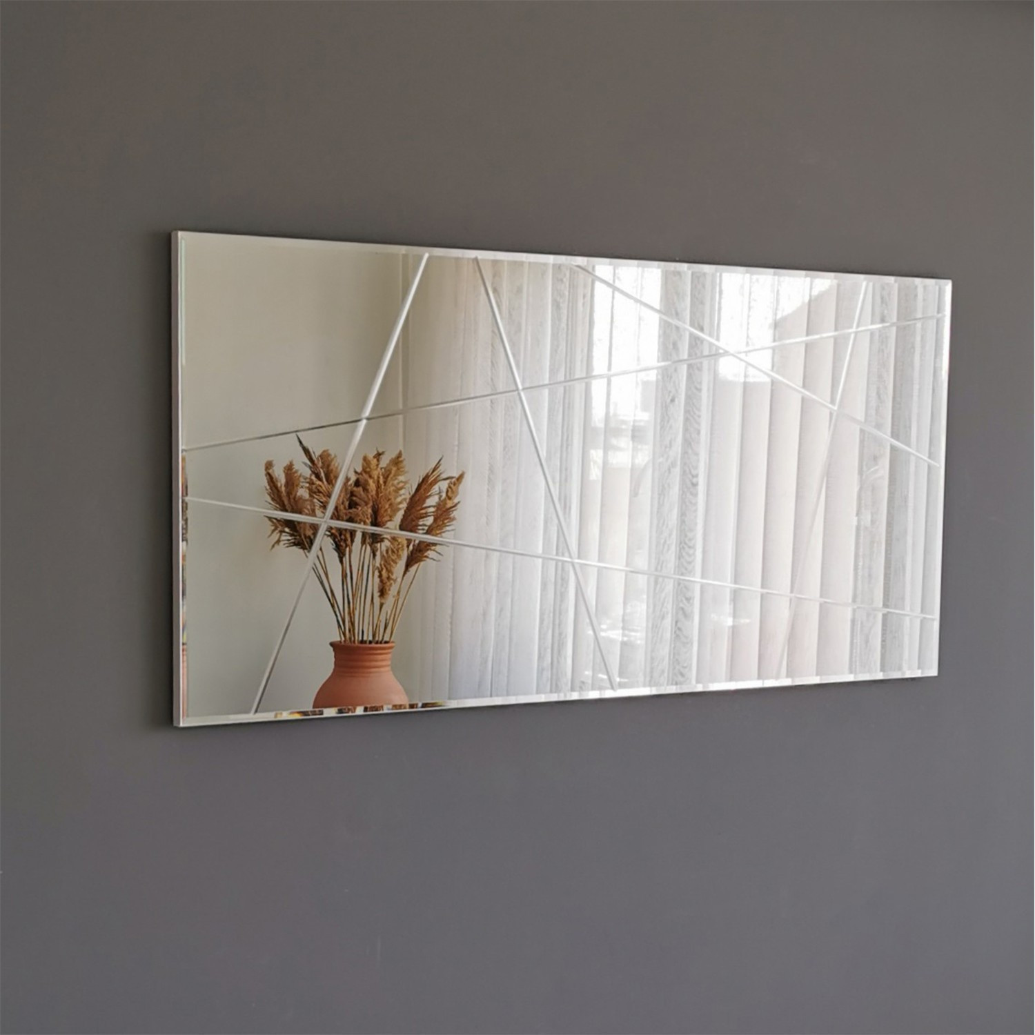 Elegantné prerušované zrkadlo z kolekcie TANGENT si nájde miesto v spálni aj v predsieni.
