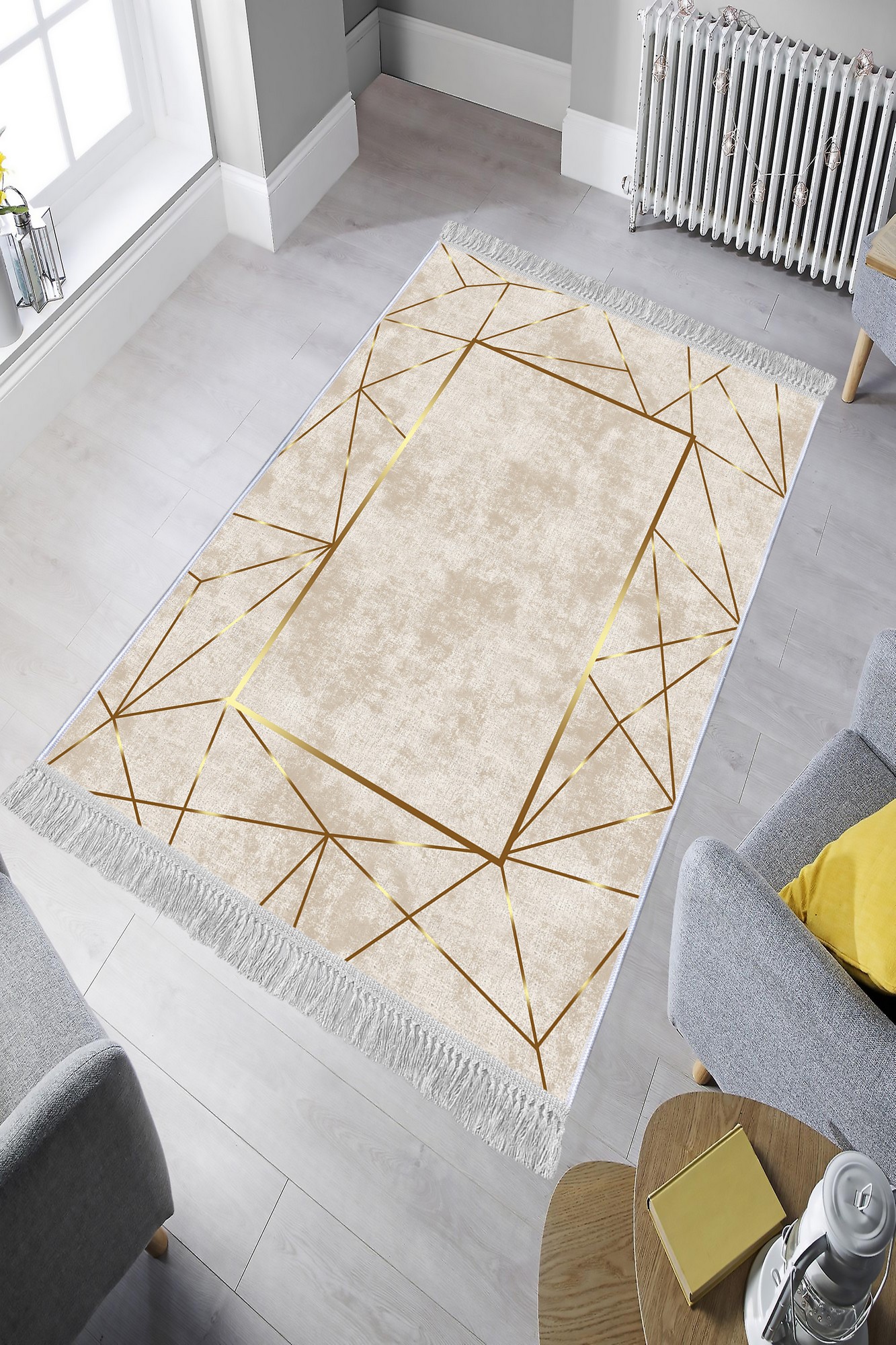 Kusový koberec MIRROR so zlatými detailmi.