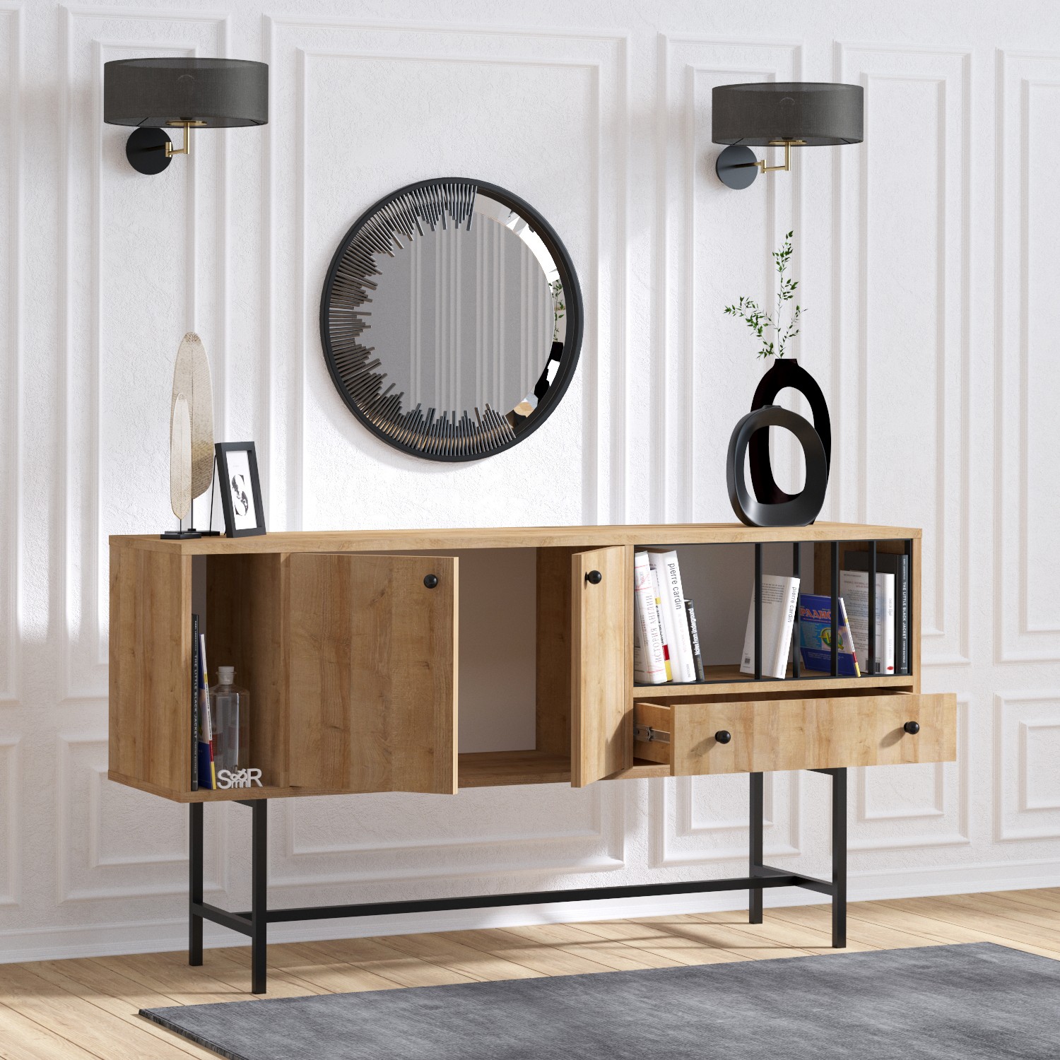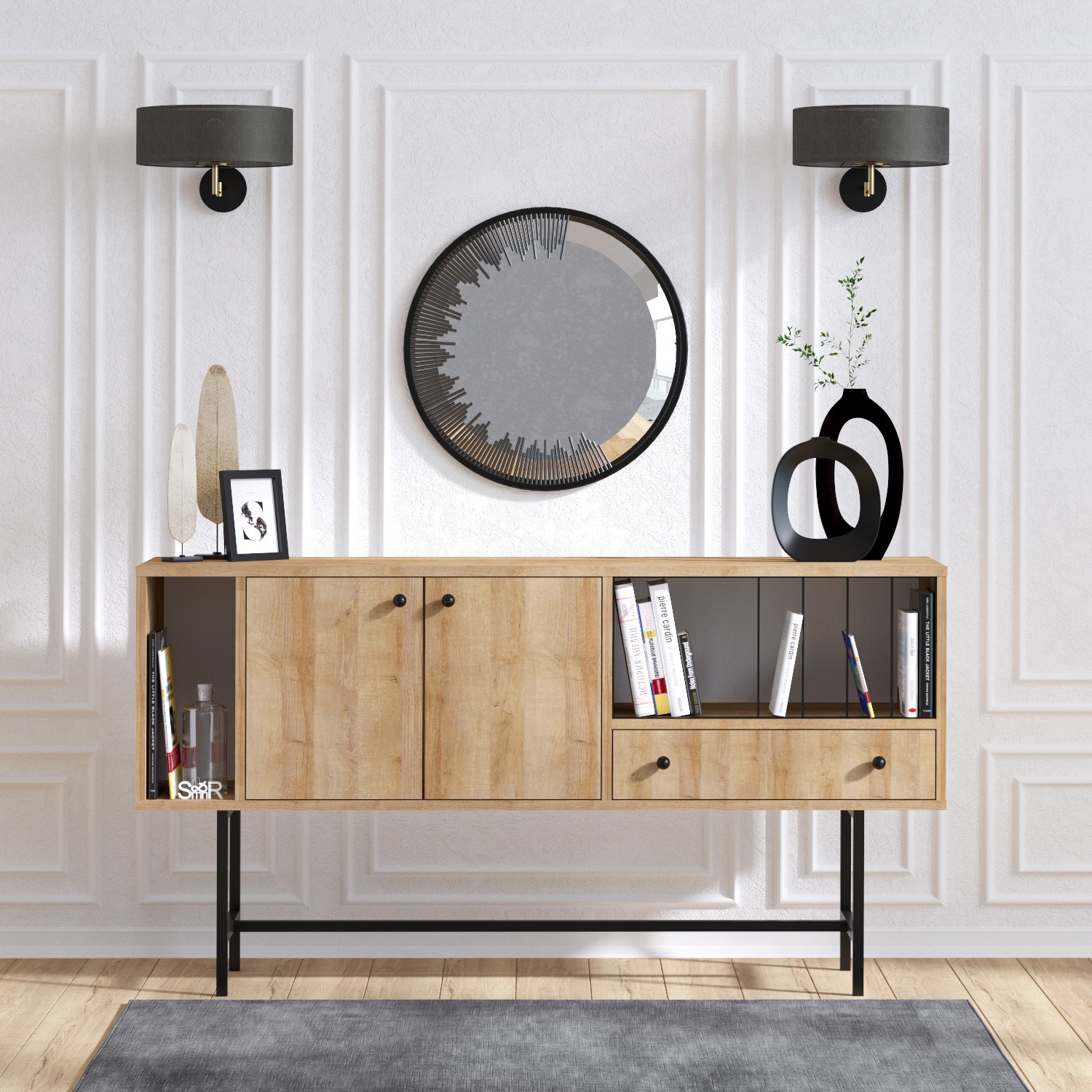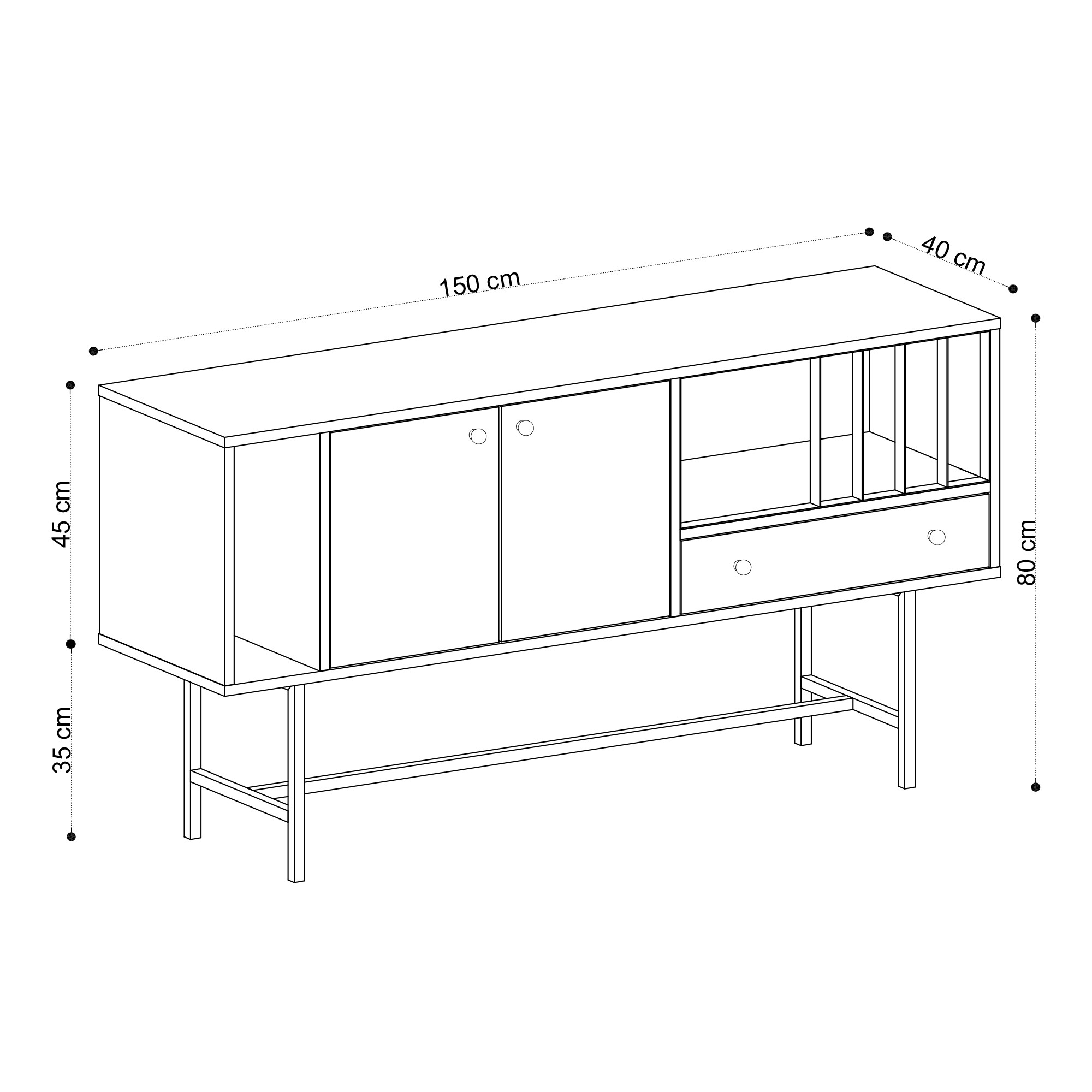 Elegantná a vzdušná skriňa s rôznymi úložnými priestormi. Vysoká polica nízka polica, zatvorená skrinka a zásuvka. To všetko nájdete na komode FREYA