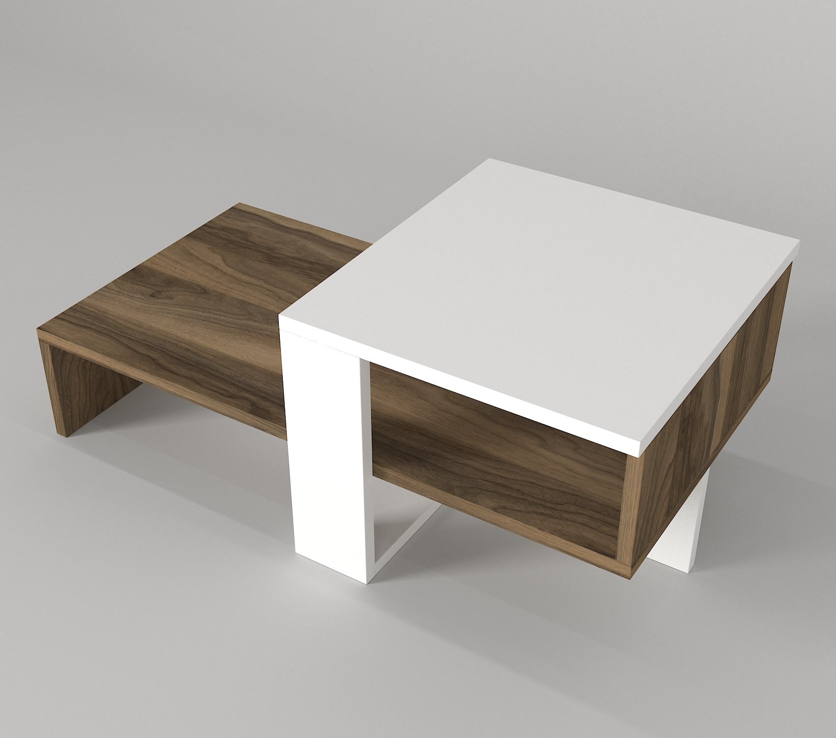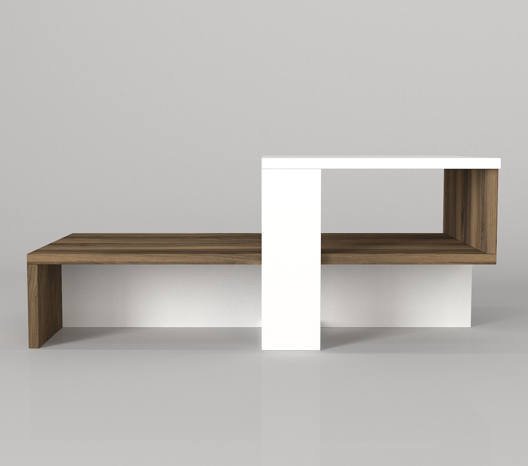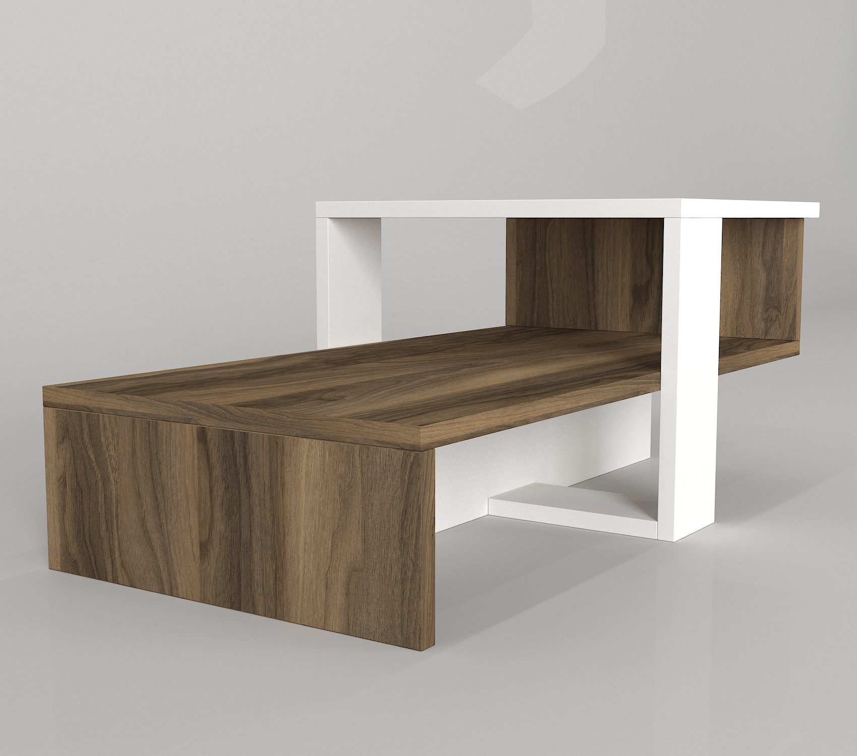 Konferenčný stolík CHAIN má veľmi nezvyčajný „prepletený“ vzhľad, dizajn je biely v kombinácii s dekorom orecha.