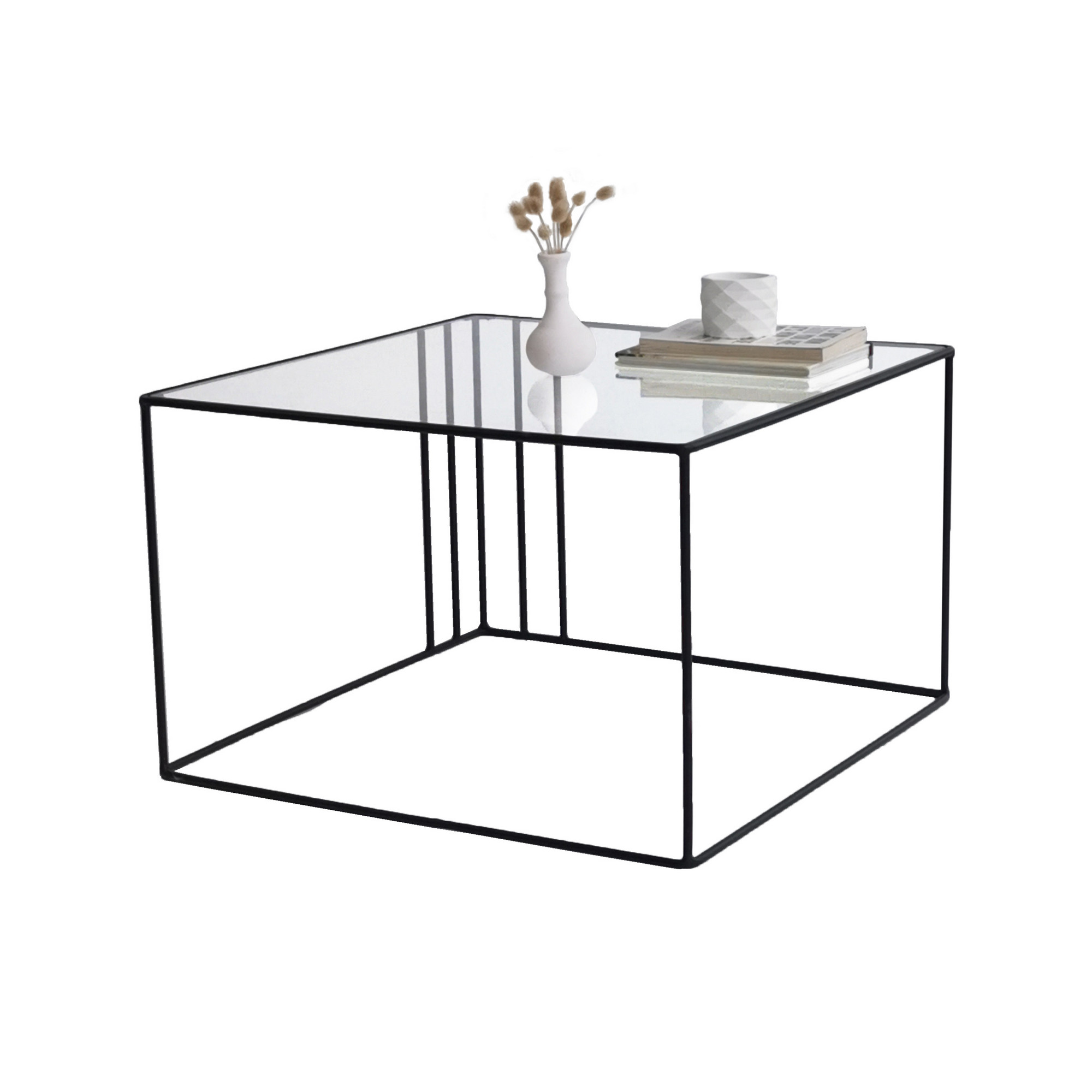 Je vyrobený z kovového čierneho rámu a doskou z 4mm silného tvrdeného skla.