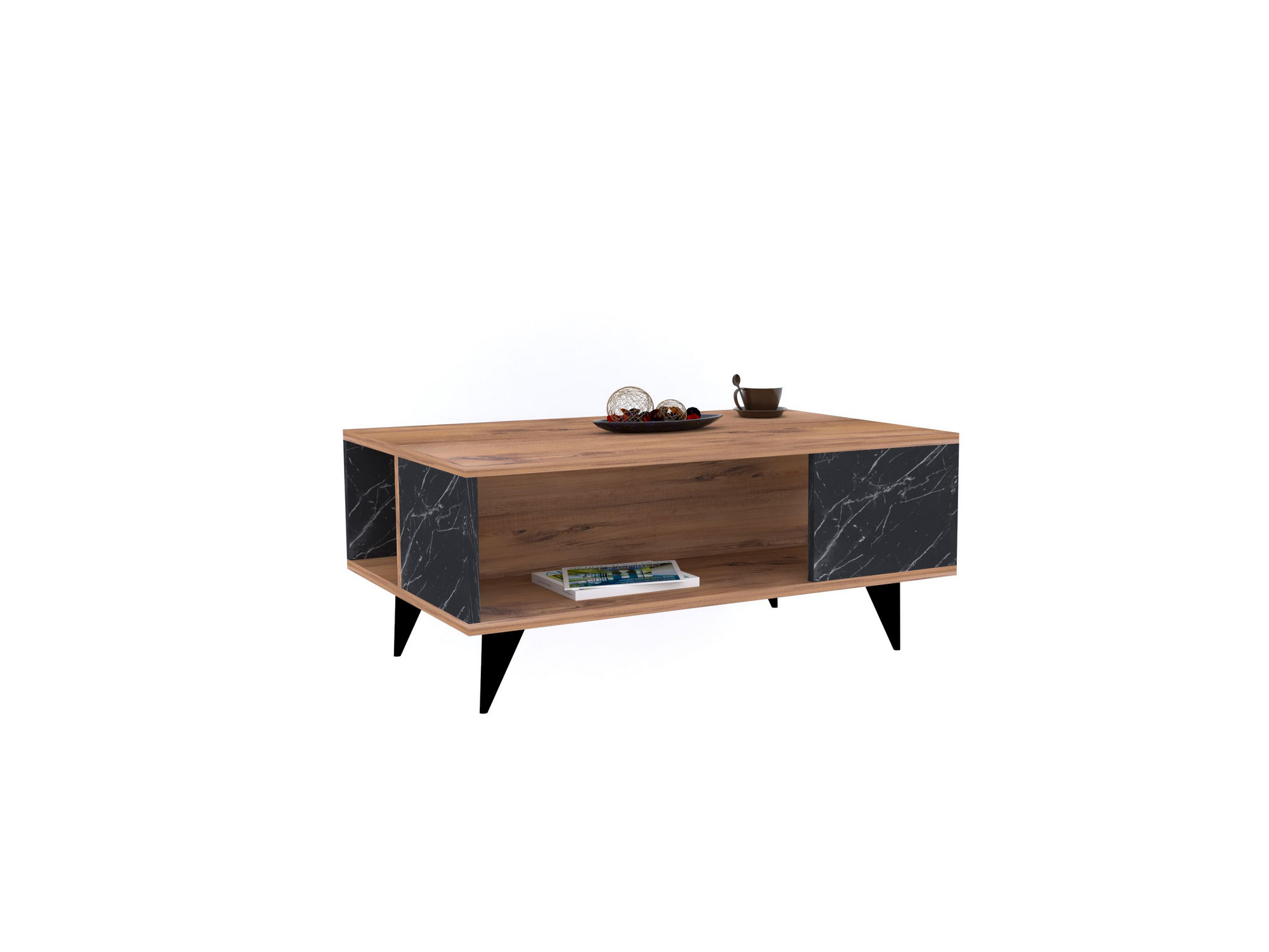 Stolík je vyrobený z 18mm širokých dosiek pokrytých 100% melamínom v dekore orech a čierny mramor.