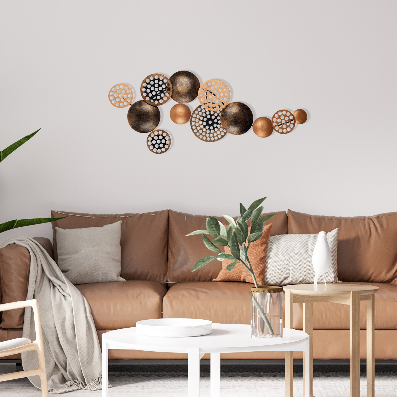 ASIR Kovová dekorácia na stenu MEDENÉ BUBLINY 90 cm