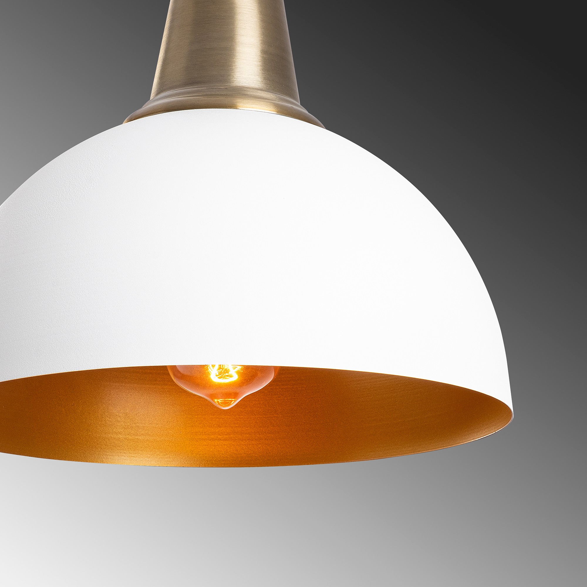 Luster DODO má malú základňu, z ktorej visí ako biela pologuľa robustnejšie tienidlo, ktorého vnútro korešponduje farebne s jeho vrchnou objímkou.